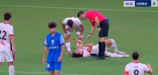 随后第12分钟,韦世豪倒地后被担架抬下场,由20岁的廖荣祥替补登场,成都蓉城被动用掉一个换人名额。