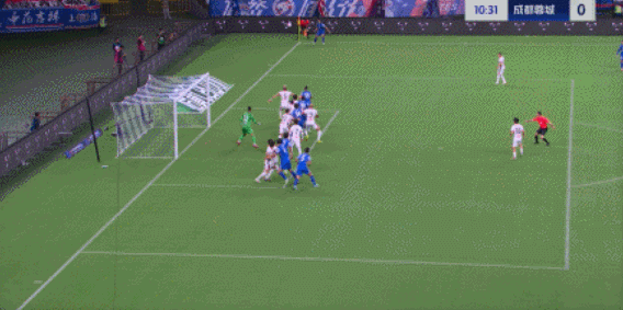 本场比赛,两队都踢得比较开放,所以场面大开大合,攻防节奏非常快。第11分钟,上海申花开出角球造成成都蓉城门前的一片混乱,连续几次射门都没有成功,最后打偏了。