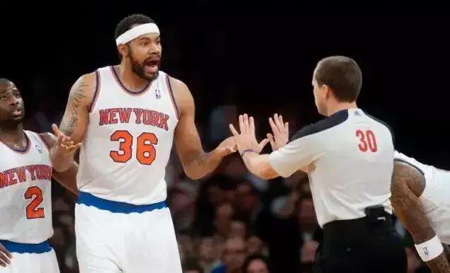 小土豆内特罗宾逊,在一次进攻中犯规了,于是他乖乖的举起了双手示意。裁判一看这不对啊,平时这小子都狡猾得很,能赖掉的犯规绝不承认,这一次怎么会这么自觉?肯定是在挑衅我,吹个T再说!