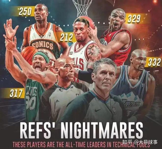 NBA历史上吃到技术犯规 最多的5大球星! 1.卡尔·马龙 332次 2.巴克利 329次 3.拉希德·华莱士 317次 4.加里·佩顿 250次 5.罗德曼 212次所以,但凡在技犯界闯出过赫赫声名的,基本也与名人堂差不了几步。只可惜随着联盟规则尺度的偏移,技犯一道的香火也逐渐势微。