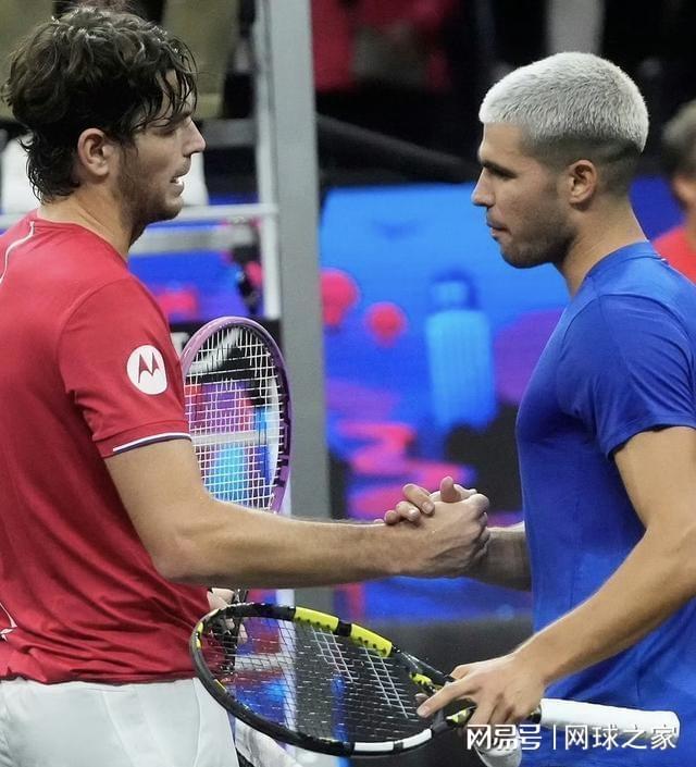 拉沃尔杯第二比赛日,阿尔卡拉斯对阵此前三战全胜的美国奶爸弗里茨,状态不佳,发挥失常,竟然未能拿到对方一个破发点,却丢掉了自己的三个发球局,以3:6 2:6的比分溃不成军。