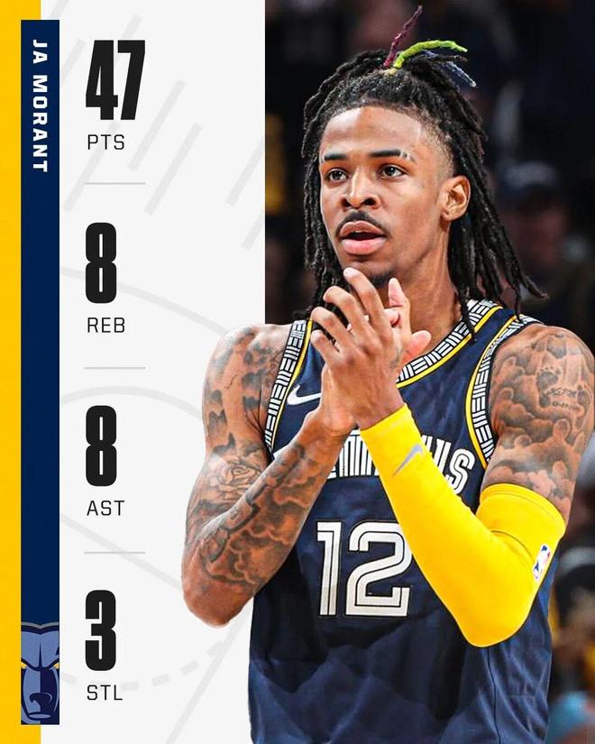 季后赛,虽然灰熊次轮出局,但莫兰特在前三场比赛:——G1,34分9篮板10助攻3抢断——G2,47分8篮板8助攻3抢断——G3,34分3篮板7助攻3抢断可惜的是,因为右膝骨挫伤,莫兰特缺席了G4含之后的比赛,灰熊也在六场过后不敌最终的总冠军勇士出局。不夸张地说,在当时那个时间点,媒体、球迷对他的期待比如今的MVP+得分王亚历山大还要高,至少在当时,亚历山大还没进过全明星和最佳阵容,而莫兰特可是被视为下一个NBA门面。
