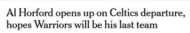 霍福德从未想过自己会离开波士顿,但如今,他希望旧金山能成为自己NBA生涯的最后一站。他知道联盟中一切皆有可能,但他坚信勇士会是自己效力的最后一支球队。“是的,我是这么想的,”霍福德说,“在职业生涯的这个阶段,综合所有情况来看,我的期望就是留在这里(结束生涯)。”