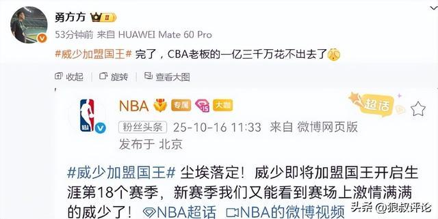 这个消息在国内引发不少争议,CBA工资帽最高只有425万,若是半个赛季就需要支付千万级别美金的合同,威少需要支付人民币过亿的投入,有媒体点评是威少团队放出消息,逼宫尽快确定合同的操作。否则,这种假的离谱的爆料,根本不符合CBA工资帽规则,如今威少和国王顺利完成签约,或许更加进一步印证了有一些媒体帮威少抬价的操作。