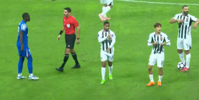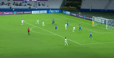 第26分钟,马纳法突破被金珍洙踩踏放倒,裁判向金珍洙出示一张黄牌。