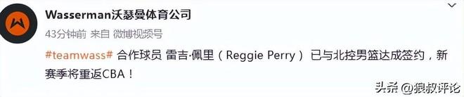 北京时间10月27日,根据“沃瑟曼体育”经纪公司发文公示:合作球员 雷吉·佩里已与北控男篮达成签约,新赛季将重返CBA!2000年出生的佩里身高208cm、体重111kg,能胜任大前锋与中锋位置。上赛季短暂效力深圳男篮,场均砍下 25.3分8.5篮板3.1助攻1.3盖帽,展现出高效的攻防表现与稳定的外线手感。23-24赛季,佩里效力于浙江稠州男篮,出战的54场比赛,场均可得13.1分5.4个篮板1.6次助攻。