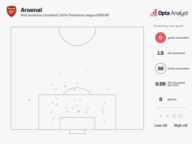 本赛季欧冠联赛阶段前三轮,阿森纳三战全胜,打入8球,一球未丢。