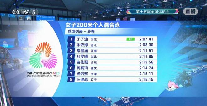 - 体育战报 | 全运会女子200米混合泳:13岁于子迪刷新亚洲纪录,收获金牌