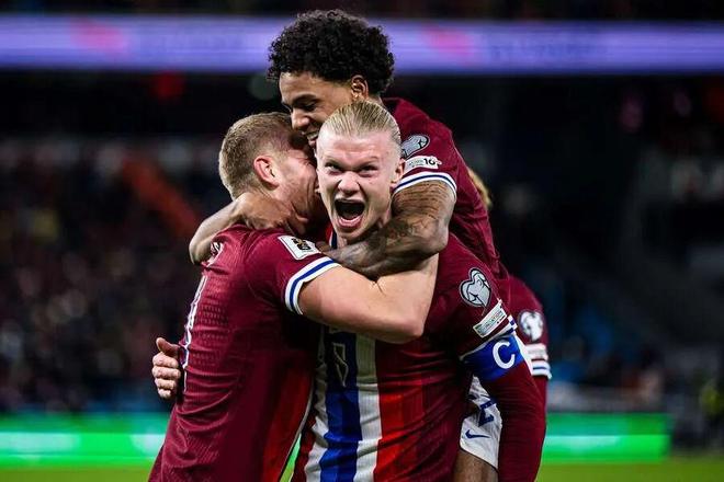 此番世预赛收官之战,挪威做客挑战意大利。他们除了手握3分的领先优势,还比意大利队多了17个净胜球。换句话说,除非意大利能赢挪威17个球,否则直接出线的便将是哈兰德领先的挪威队。当然,挪威不会让这一幕上演,他们虽然开局便0-1落后,但在下半场爆发了惊人的得分能力,努萨、哈兰德和拉尔森连轰4球,直接主客场双杀意大利,毫无争议的以小组第一晋级2026美加墨世界杯。