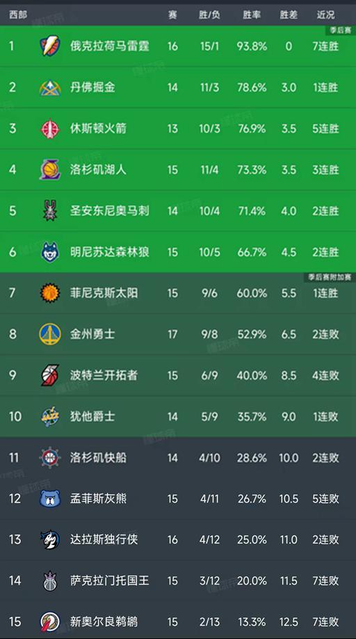 北京时间11月20日,今日的NBA常规赛结束了所有比赛,我们一起看看西部球队的发挥和最新积分榜变动,主要的信息如下:雷霆113-99战胜国王,掘金125-118战胜鹈鹕,火箭114-104战胜骑士,开拓者121-122被公牛绝杀,独行侠111-113憾负尼克斯,森林狼120-109轻取奇才,勇士96-110不敌热火!