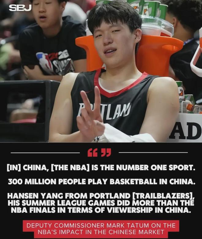 值得一提的是,前不久NBA副总裁马克-塔图姆谈到了杨瀚森,表示后者在夏季联赛比赛的收视率比总决赛还要高,他们非常重视中国&亚洲市场。