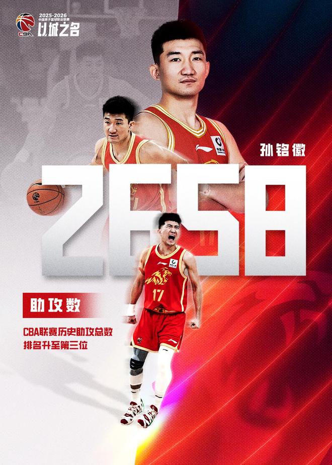比赛中,塔克斩获20分3篮板3助攻,胡金秋16分6篮板入账,并罚进关键进球,孙铭徽13分11助攻收获两双数据,并登上CBA历史总助攻榜前3。