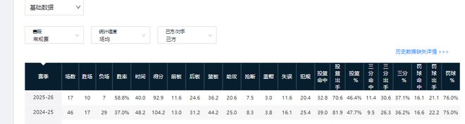 另外,上海男篮上赛季常规赛的百回合失分、得分、净胜分均是联盟第六水平。本赛季17轮后,他们的百回合失分、净胜分已高于联盟第一,百回合得分排在联赛第三。